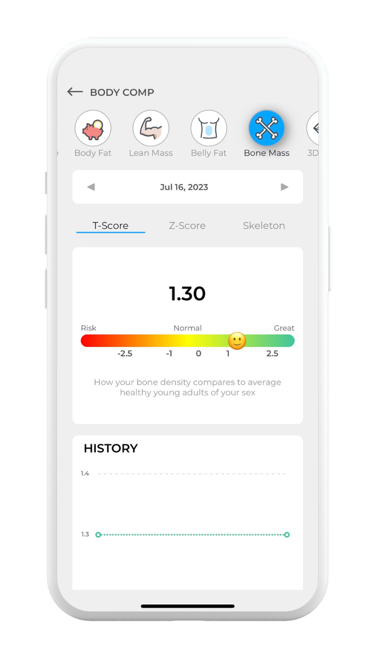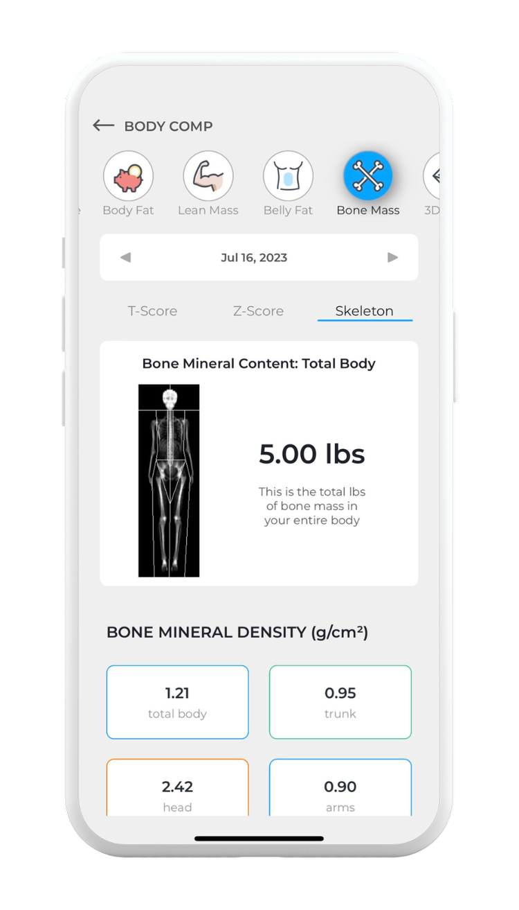 Bone Mineral Density (BMD): See the strength of your bones at key skeletal sites